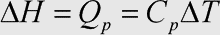 dq ist unter isobaren Bedingungen gleich cpdT. Nun teilt man noch durch die Stoffmenge und erhält die gesuchte Beziehung unter der Annahme, daß Cp für die betrachteten Temperaturdifferenzen konstant bleibt (in der Praxis verwendet man oftmals geeignete Mittelwerte).
